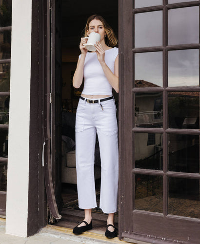 SUPER HIGH RISE RAW HEM BARREL JEANS V3575WH