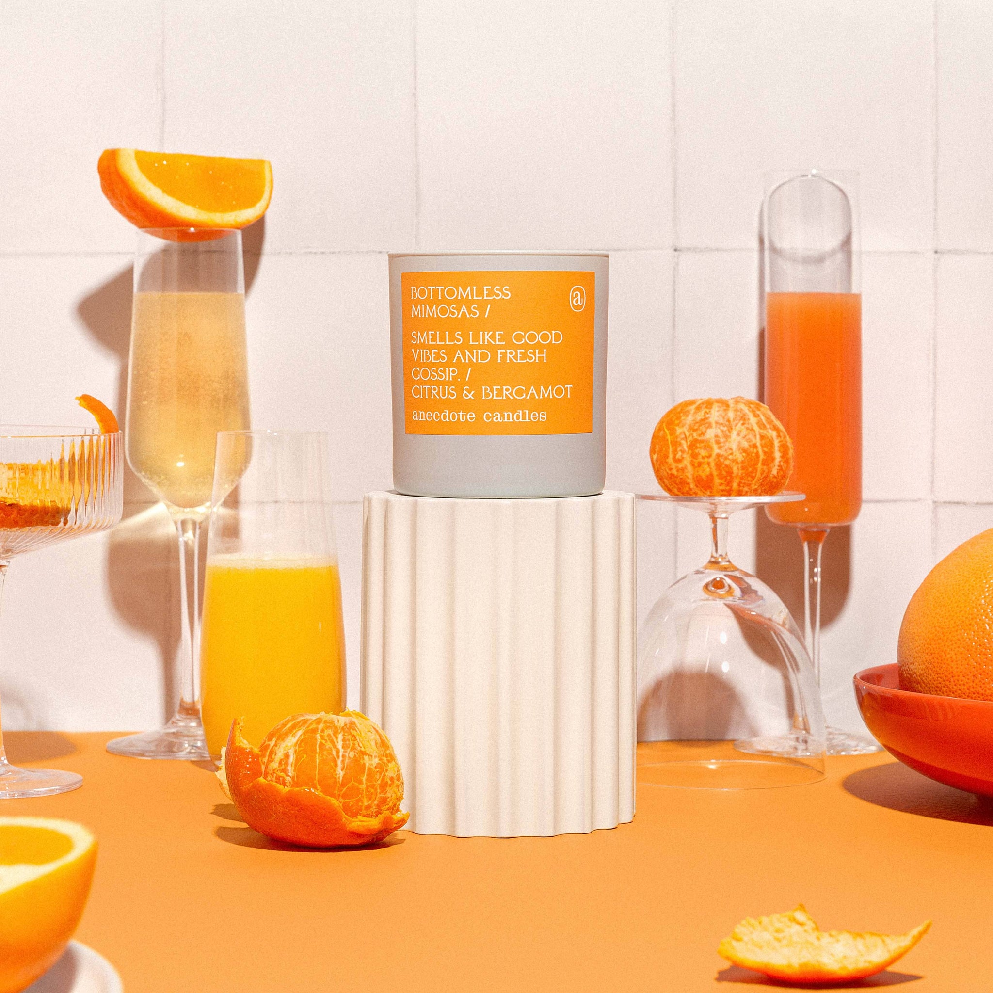 Sparkling at the start, Bottomless Mimosas leads with a fresh citrus aroma of blood orange, bergamot, and grapefruit. Fresh green notes round out the scent to create a balanced fragrance reminiscent of everyone’s favorite breakfast beverage. Additional information: Made with a coconut-soy wax blend, cotton wicks, and phthalate-free fragrance oils. Sizing Information: - 9oz boxed tumblers feature a matte grey vessel with a colored label and corresponding box - perfect for just-in time gifts. Each candle burns for 60 - 70 hours