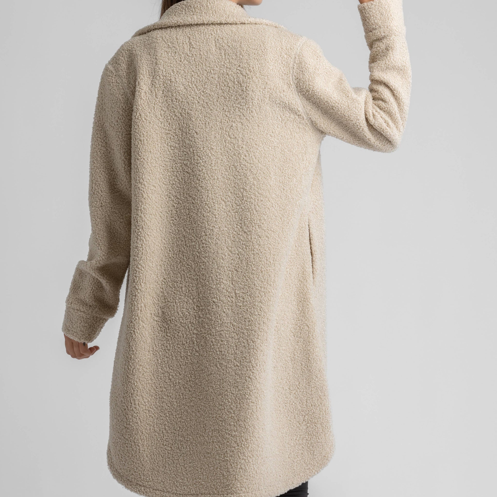 * Set-in sleeve snap long shacket.